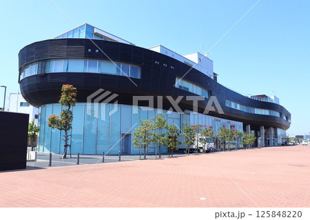 愛媛県今治市のみなと交流センター(はーばりー)を西側から見る
