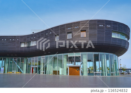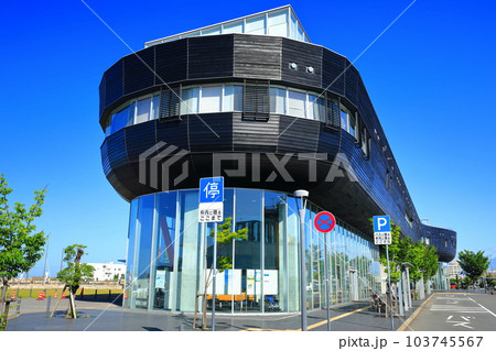 愛媛県今治市のみなと交流センター(はーばりー)を北側から見る