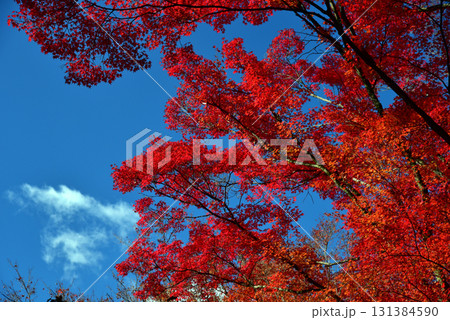 秋の京都 今熊野観音寺 茶所から見る燃えるような赤色の紅葉