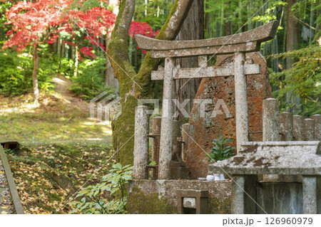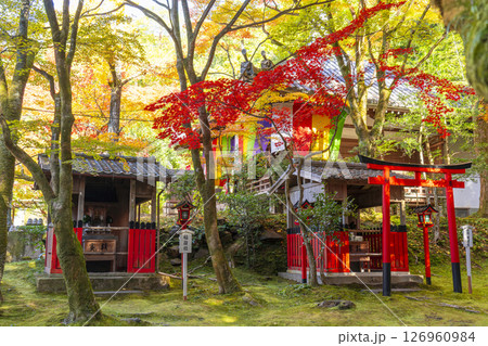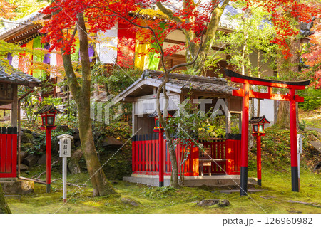 秋の京都 今熊野観音寺 紅葉に包まれた稲荷社と熊野権現社