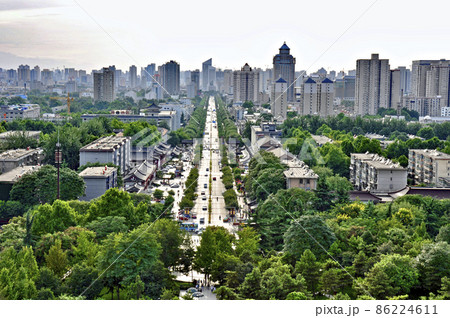中国 西安市 大雁塔第七層から西側の街並みを望む