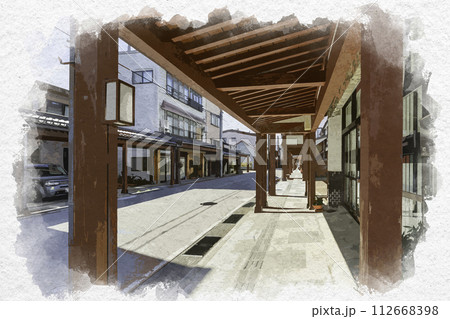 水彩画風 三国湊 上八町通りの町並み 福井県坂井市
