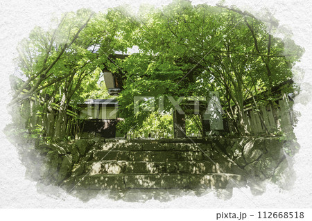 水彩画風 飯山 寺めぐり遊歩道 六地蔵 長野県飯山市