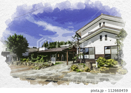 水彩画風 飯山 高橋まゆみ人形館 長野県飯山市