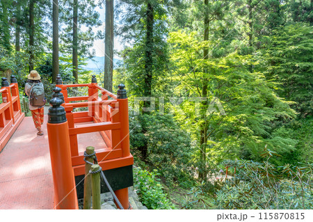 京都高雄にある神護寺大師堂の緑風の情景