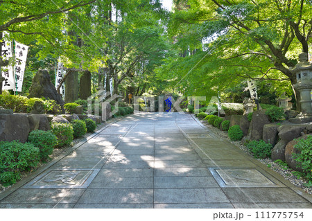 袋井市にある紅葉に包まれた油山寺の参道の風景(静岡県)