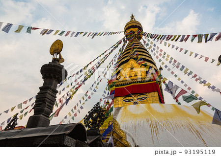 ネパール カトマンズの広場に建つ仏教寺院のストゥーパのカーススワヤンブ