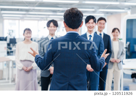 オフィスで朝会をするビジネスパーソン