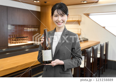 お酒の営業をするビジネスウーマン
