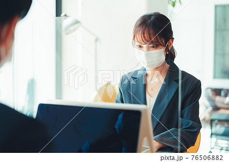 マスクをして仕事をする女性