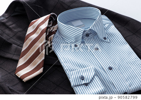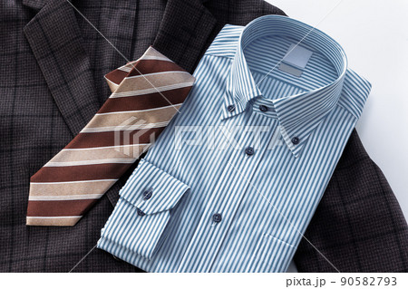 清潔なストライプ柄のワイシャツと茶色のスーツ