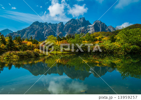盛秋の北アルプス 仙人池 水鏡に映る 裏剱