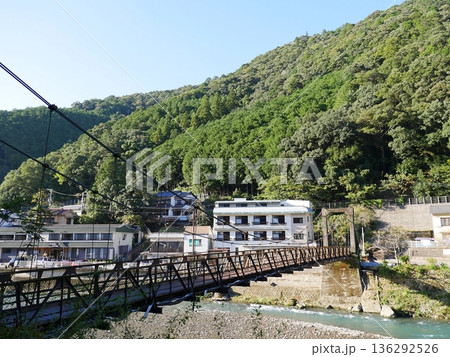 和歌山 田辺市 川湯温泉(橋と温泉郷)(秋)