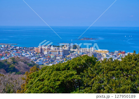 神奈川県三浦郡葉山町の仙元山から西側の眺望(葉山町,森戸海岸,相模湾など)