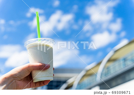 ずんだ味シェイクと仙台空港駅 青空 宮城県名取市