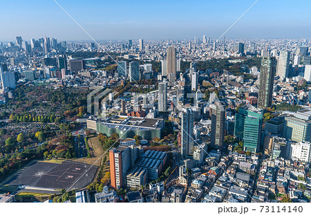 日本の東京都市景観 東京都渋谷区の代々木上原駅前などを望む