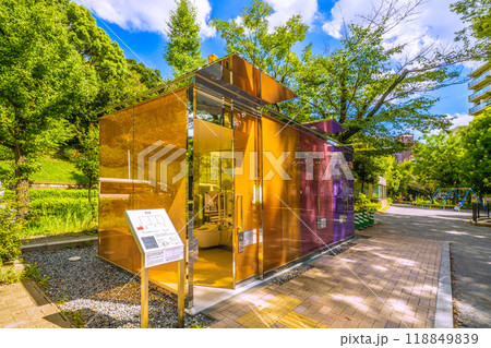 日本の東京都市景観 東京都渋谷区の代々木深町小公園に設置されている透明トイレ