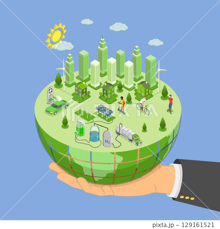3D Isometric Flat Vector Illustration of Urban Transport, Sustainable Transportation Using Alternative Car Power Sources