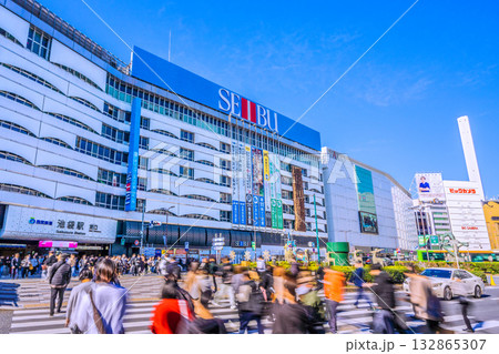 日本の東京都市景観 池袋駅東口などを望む。西武池袋本店の改装工事…=19日