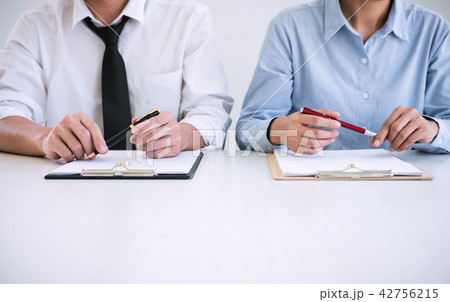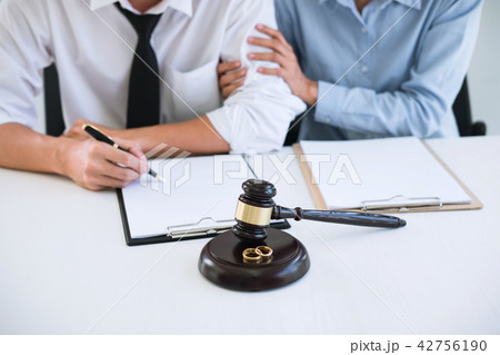 Husband and wife are signing decree of divorce (dissolution or c