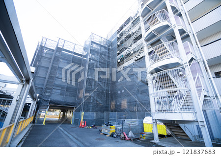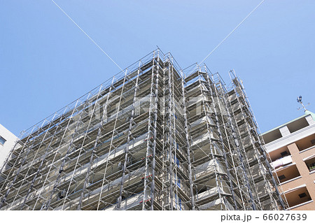 足場が組まれた建設現場