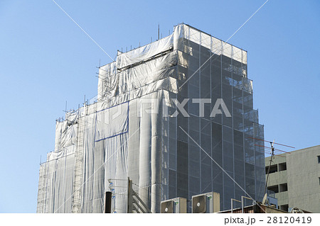 建物 大規模修繕イメージ 改修工事 足場と養生 クローズアップ 高層マンション