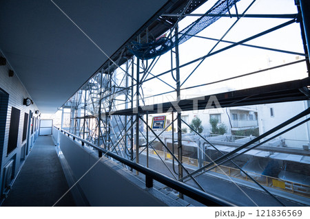 室内から見た改修工事・修繕工事の足場