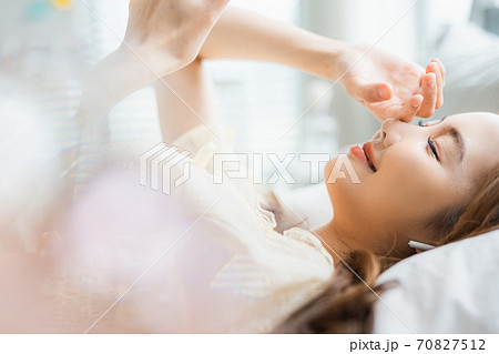 20대 여성 라이프스타일 침실 휴식