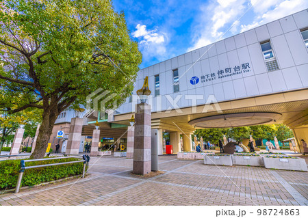 日本の横浜都市景観 横浜市営地下鉄 仲町台駅前の公衆電話などを望む