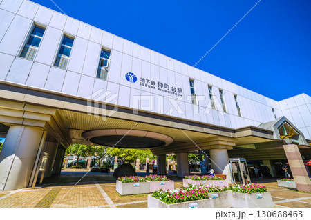 日本の横浜都市景観 地下鉄 仲町台駅を望む