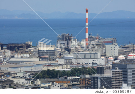 新居浜市街と住友化学のコンビナート、燧灘の島々のパノラマ