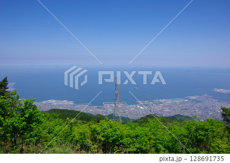 愛媛県四国中央市 翠波峰展望台から福山市・芸予諸島方面を望む