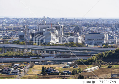 伊勢原市総合運動公園の展望台からの眺望 伊勢原インターチェンジ
