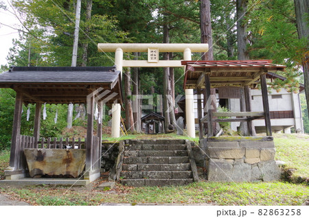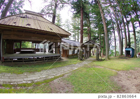 信州 筑北村の神社 刈谷沢神明宮 境内光景 白鳳時代の創建