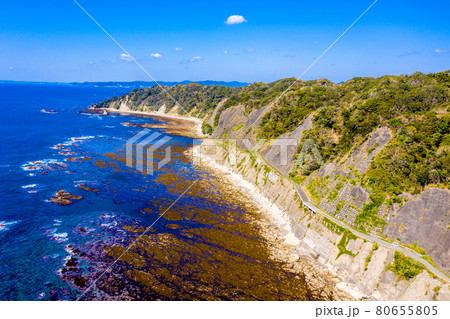 小湊の入道ヶ岬から浜行川岬にかけて外房の伊南房州通往還(千葉県鴨川市)