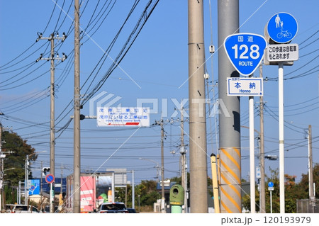 国道128号線「本納交差点」付近の風景:千葉県茂原市