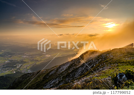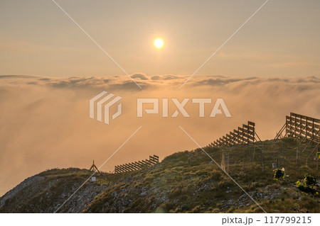 《滋賀県》伊吹山山頂・夕暮れの雲海