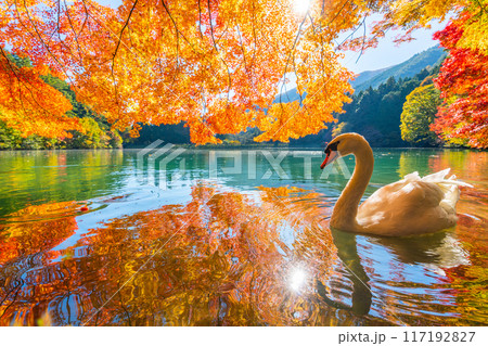 伊奈ヶ湖での紅葉と白鳥 【山梨県 南アルプス市】