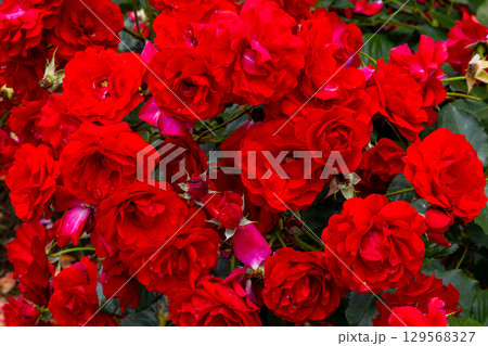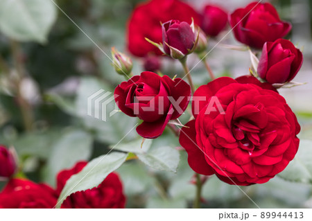 埼玉県北足立郡伊奈町小針内宿 伊奈町制施行記念公園バラ園の赤い薔薇クローズアップ
