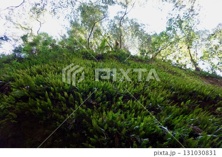 シダの群落の谷から後ろ、伊尾木洞方向を見る
