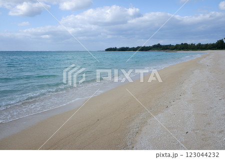 沖縄県伊是名島 曇りの朝の伊是名ビーチ