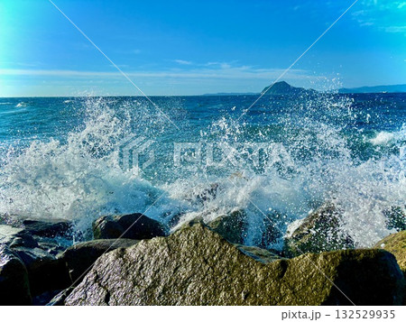 伊良子の岩礁にあたる波飛沫