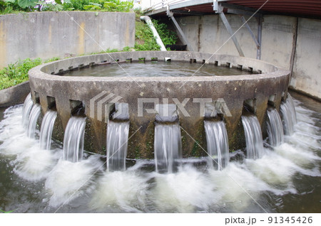 長野県の灌漑施設 西天竜幹線水路 円筒分水群「羽北2号」 特徴的な灌漑施設