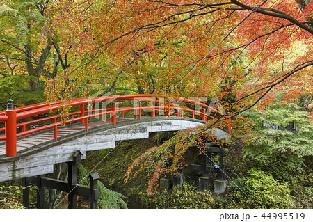 深紅のモミジと河鹿橋 伊香保温泉湯元