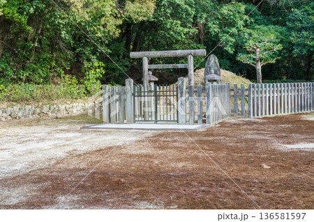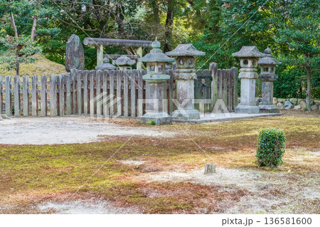京都嵯峨野嵐山公園の中に有る、後嵯峨天皇火葬塚、龜山天皇火葬塚、後伏見天皇火葬塚、縦位置