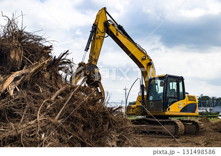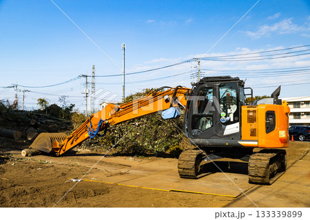 森林伐採工事現場 重機バックホー