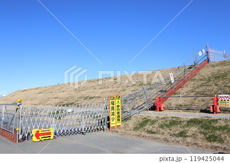 土手から見る工事休みの冬の江戸川河川敷風景