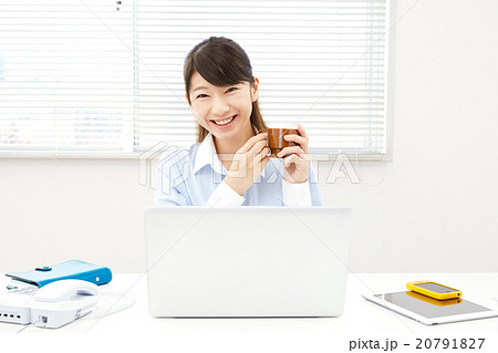 ビジネスウーマン オフィス 休憩