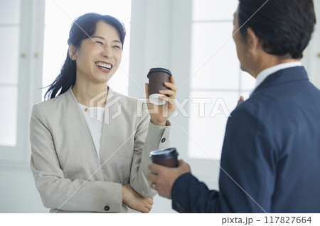 同僚とおしゃべり ビジネスウーマン 撮影協力「近畿大学」