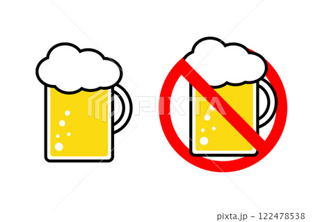 ジョッキに入ったビールと禁止マークがつけられたビールのイラスト